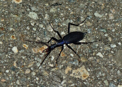 土の中や朽ち木に潜り込んで成虫越冬し、春先に姿を現す。マイマイとはカタツムリのことで、カタツムリを餌としている。日本の固有種で、翅が退化して飛べないため、地域内で交配を繰り返し、いくつかの亜種に分かれた。この個体は頭部・前胸背が群青色を帯びている。北陸地方に生息する亜種は、ヒメマイマイカブリ。オサムシ科。