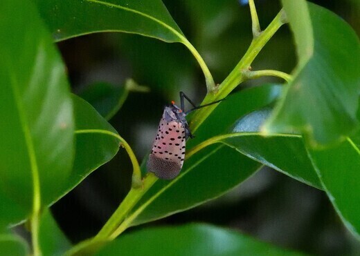 強い日差しの午後、ムラサキツバメを探しながらマテバシイを見て回ると、木陰で涼んでいるシタベニハゴロモを発見。昨年までは、シンジュ(ニワウルシ)に付いていたが、今年は別の木でも見つかる。宿主木を変えながら、発見された平地から内陸部へ生息地を広げている?