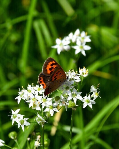 ベニシジミの季節型は幼虫時代の気温や日照時間によって決まる。春型は前翅のオレンジが明るくて鮮やか。6月から9月に羽化する夏型は前翅に茶色が混じり、ちょっと汚れた感じになる。この個体は秋型で、春型と同じ様に見えるが、縁の茶色部が春型より広い。