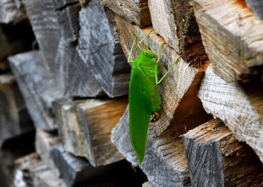 セイボウを探していると、大型で緑色のクダマキモドがとまっていた。前脚の色がわかるように撮影してみると、サトクダマキモドキの♀。ヤマクダマキモドキの前脚には紫色の部分がある。褐色で短い産卵管は鎌状に湾曲していて、樹皮に差し込んで産卵する。「クダマキ」はクツワムシの別名で、「里に棲むクツワムシに似ているもの」という意味。